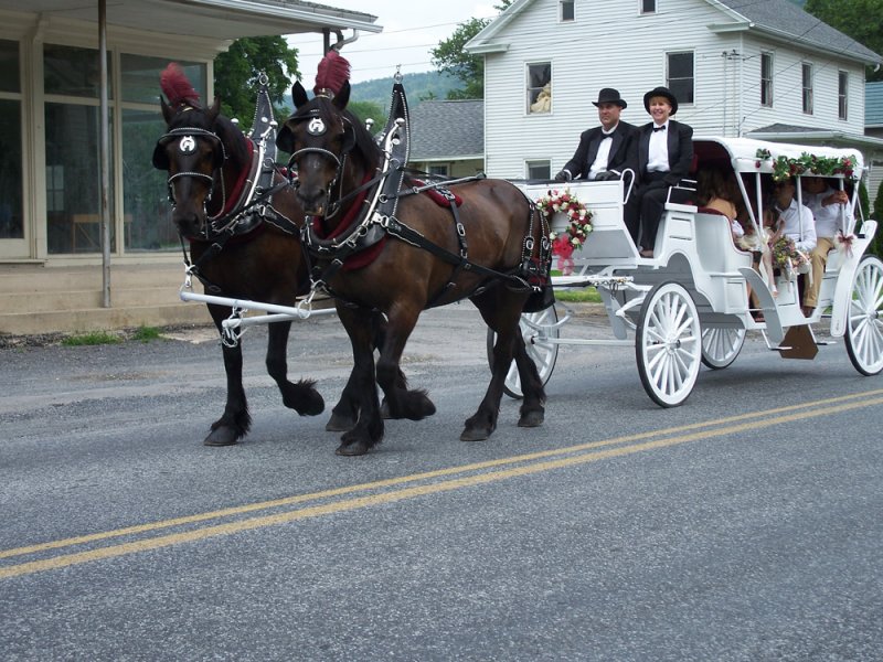 Horse-drawn Carriage, Wagon, and Sleigh Rides at Running Springs, Pennsylvania. We offer carriage services for Weddings, proposals, community events, birthday parties, Christmas parties etc.